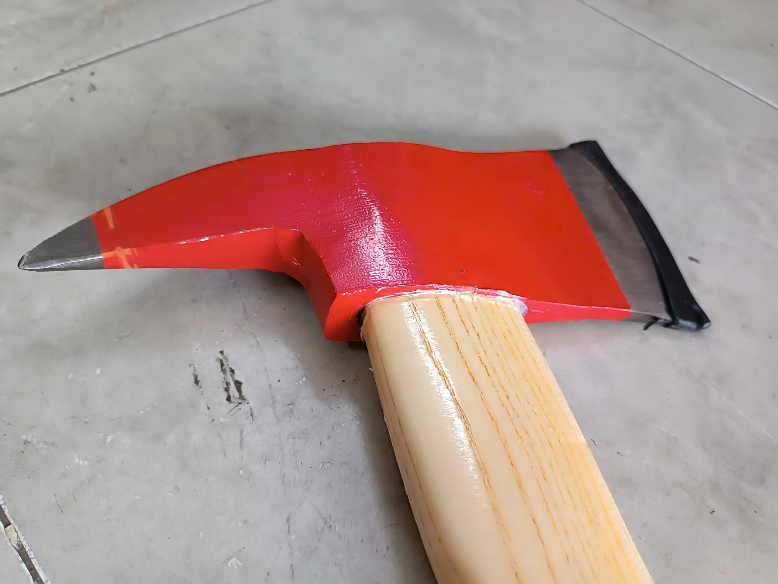 2/3 bề mặt lưỡi Rìu phá dỡ cứu nạn được sơn chống cháy màu đỏ, 1/3 là lưỡi trắng.